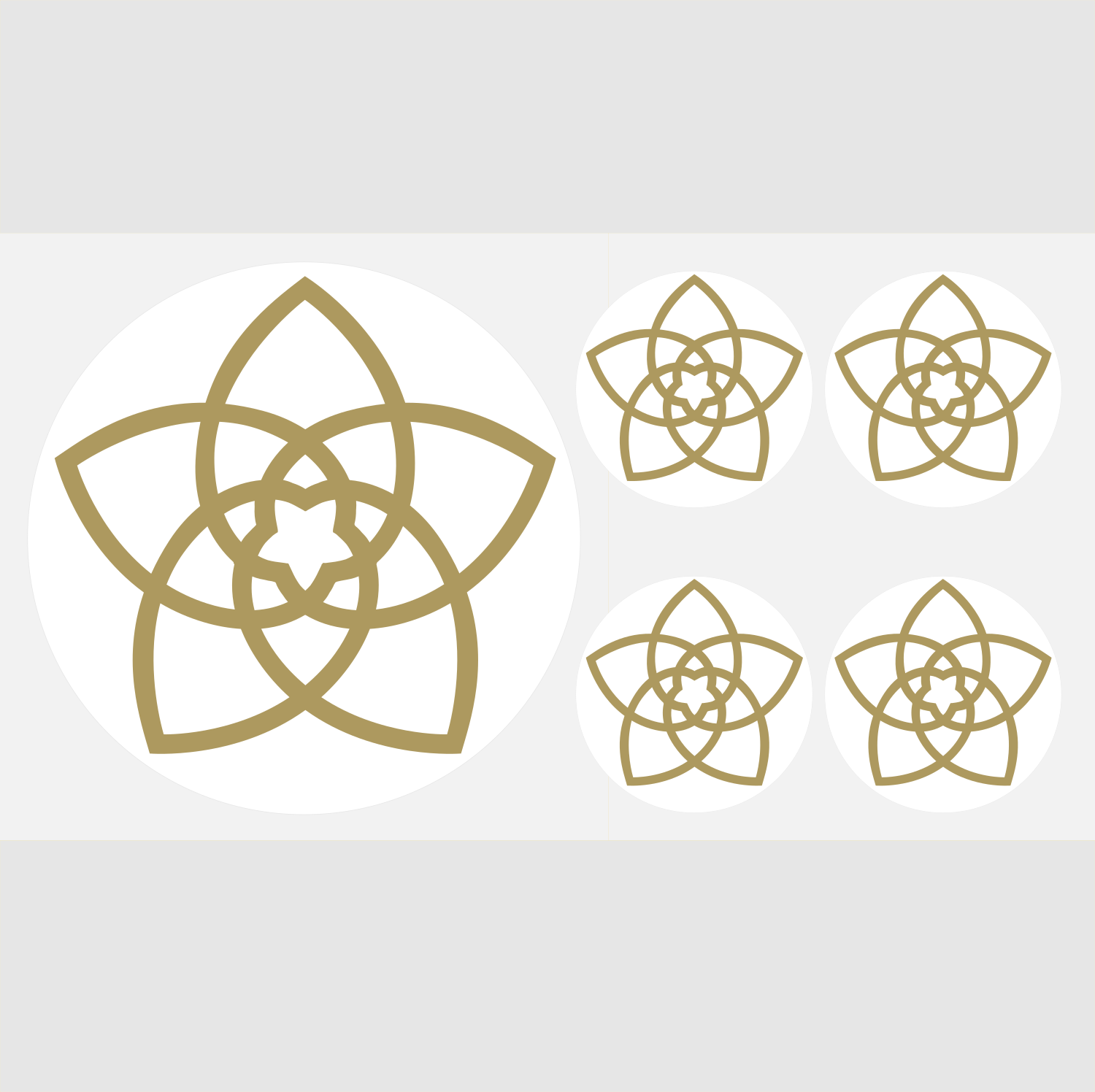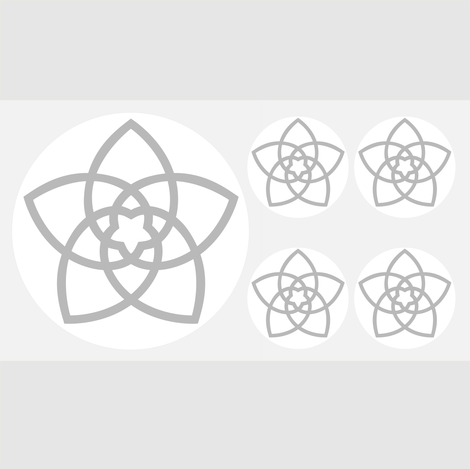 1 Aufkleber Ø 7,5 cm + 4 Aufkleber Ø 3,0 cm